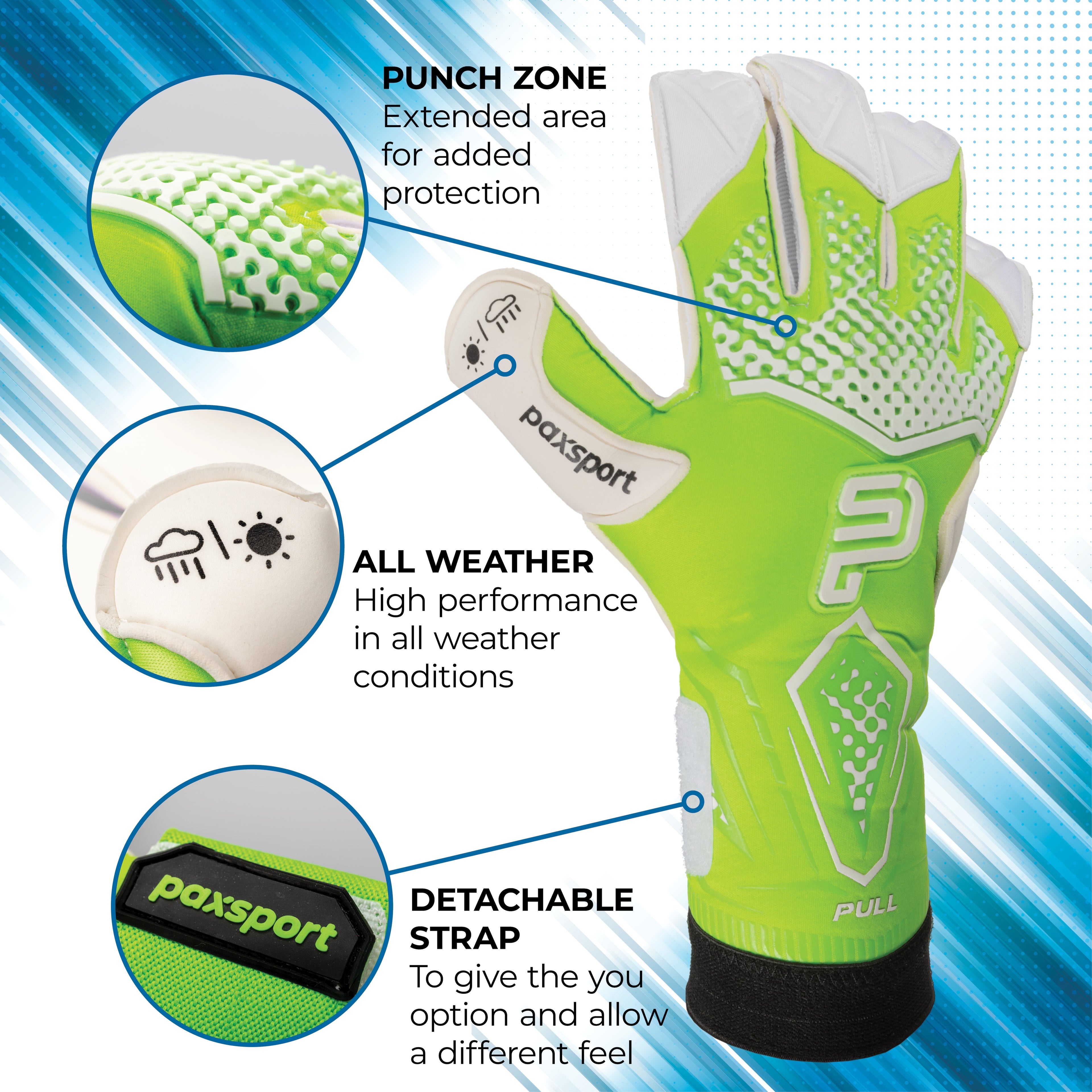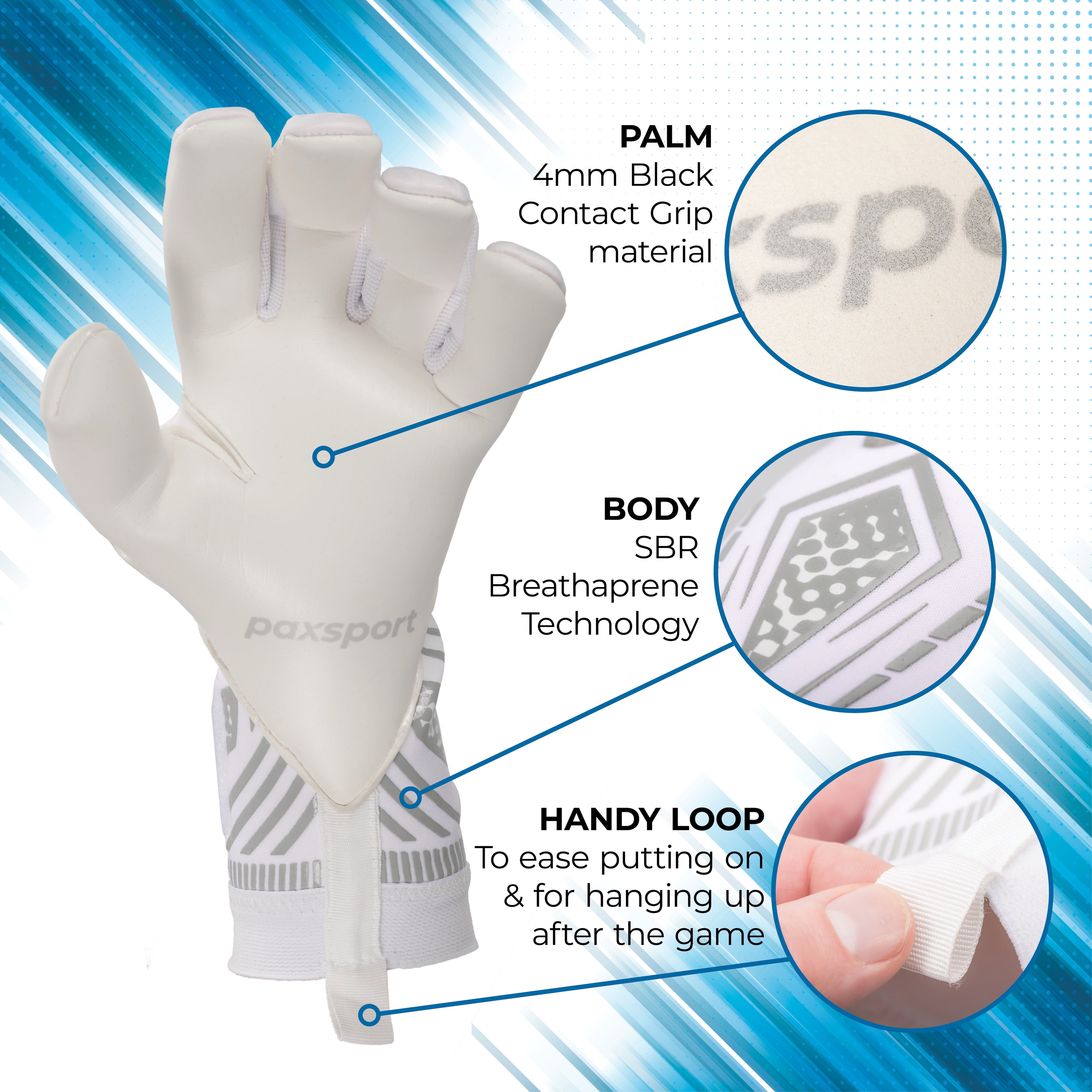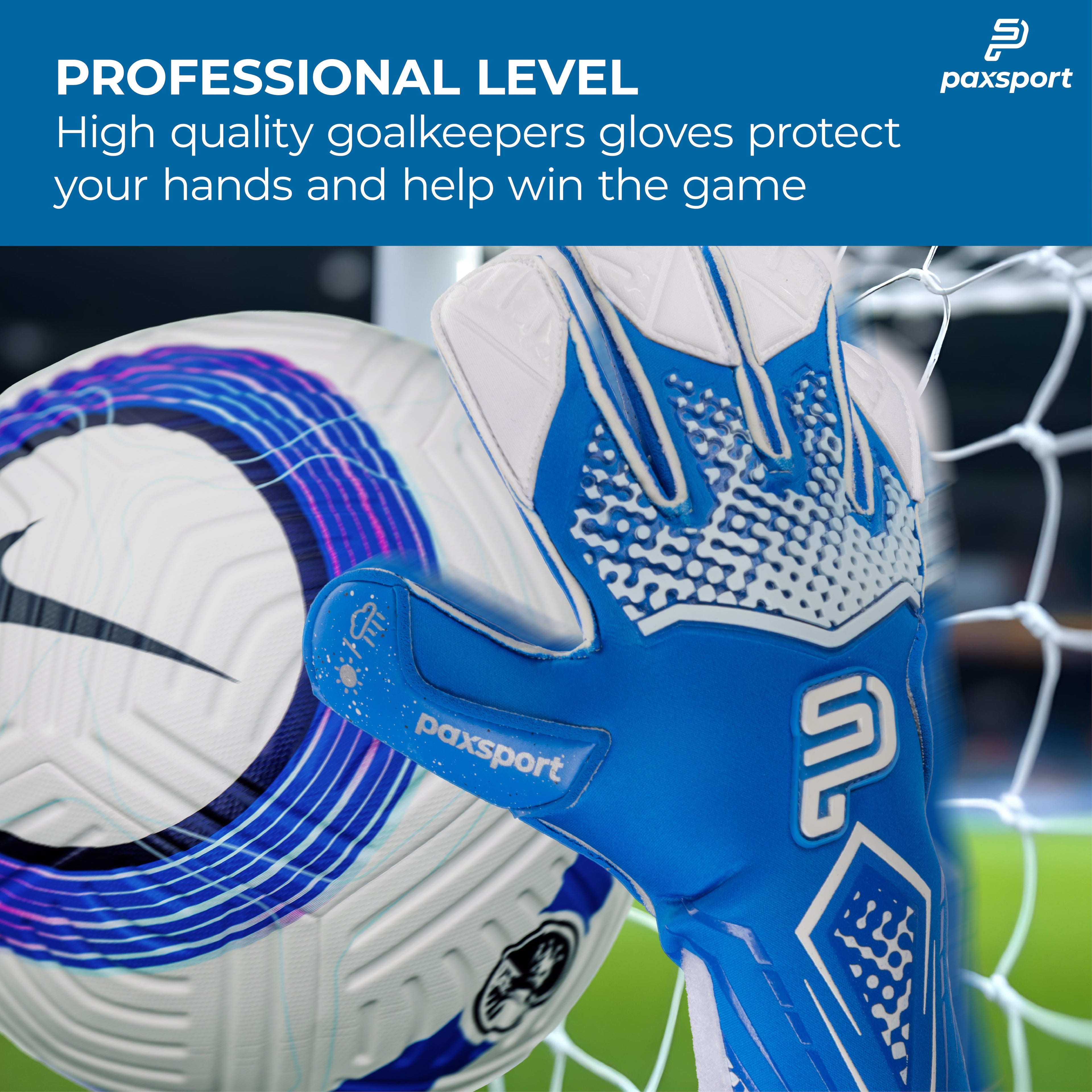 - Gloves Packaging: Premium glove wallet with Paxsport branding